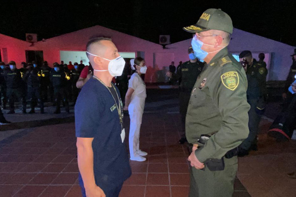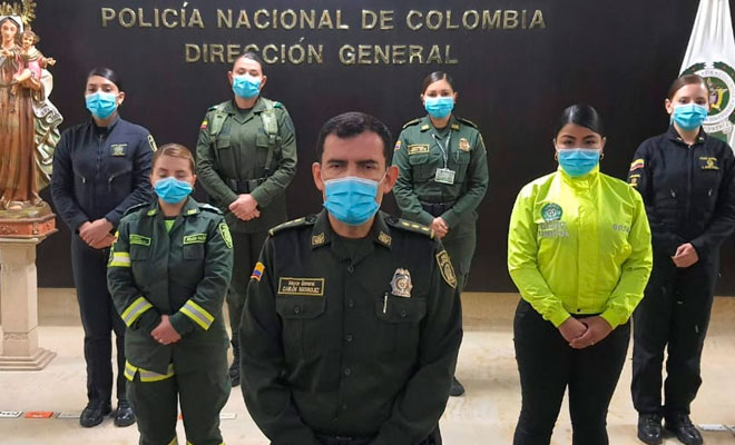 Comandante de la policía metropolitana de Neiva, al lado de sus hombres, velando por la seguridad y la convivencia