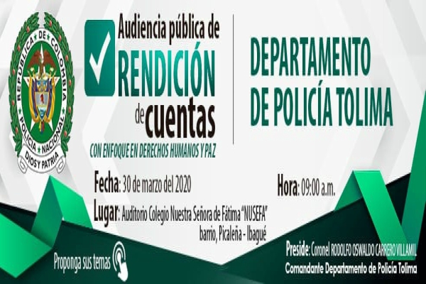 El departamento de policía Tolima realizará rendición de cuentas de la vigencia 2019.